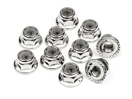 HPI Serrated Flange Lock Nut M4 (Silver/10Pcs)