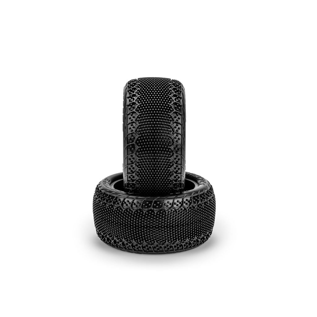 Looking back in the JConcepts arsenal, a dirt tire was released in 2011 named 3D. The tire was developed as half pin and half bar tire to give a lot of flexibility on different surfaces. Using this identity, the team from Groveland, Florida adapted the Fuzz Bite “reverse water tower pins” to the 3DP with a massive increase in pin quantity for the center portion of the tire. For the inside and outside positions, unique bars which have been cut and sliced for increased flexibility are positioned like the original 3D dirt tire.