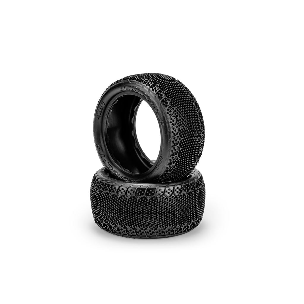 More pins are added in the open spaces utilizing the original concept to allow slightly more space on the outside. A radial ring is added to the outside portion of the upper sidewall to provide low edges of contact patch to the racing surface. The JConcepts tires include open cell, medium inserts for plush control. The 2.2” bead mounting diameter fits to popular wheels like the #3348 Mono wheels available in bright white and fluorescent yellow. In addition to Mono wheels, JConcepts also offers separate the Pioneer wheels for modern vehicles featuring the raised panel design available in new colors such as retro pink.