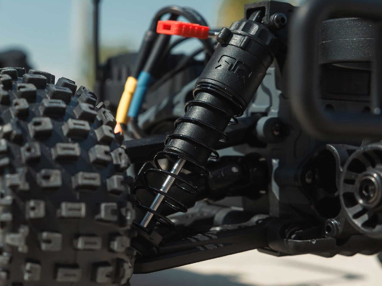 The closed-wheel body design screams "short course". You can go for the block pass in a race and not worry about getting tangled in your competitor's tyres. From bumper to bumper, the FURY 223S BLX is engineered for thoroughly modern short course handling. The mid-motor design lets it carve turns without pushing, while the low CG and large footprint provide impressive stability. In the heat of racing, the dynamic long wheel travel looks super cool.