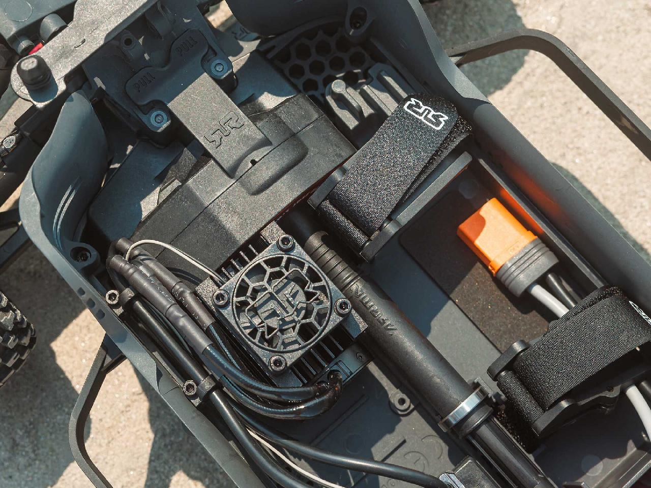 You control how fast your SENTON 223S BLX 4X4 can go with the battery you choose and where you set the Spektrum SLT3 transmitter's throttle limiter switch. With throttle limiting, the SLT3 automatically limits top speed to whatever level you prefer until you're ready for it all. Set the switch to 50% or 75% and you'll never have to worry about moving faster than you can safely manage. Make the transition from 2S to 3S brushless speeds with complete confidence.