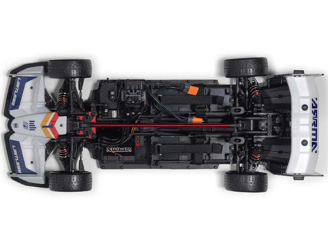 Straight out of the box, this ready-to-run production spec RC car comes locked and loaded with everything you need to dominate asphalt, embarrass supercars, and leave tire marks on your memory. Just drop in your choice of 6S or 8S hardcase LiPo and add a charger, and you’re holding the keys to the fastest production RC ever built. Now you’re ready to unleash peak ARRMA speed potential.