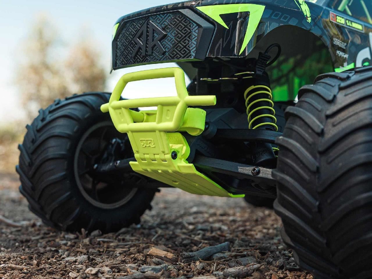 When you're blasting with the ARRMA GORGON MT monster truck, all eyes will be on you — and on its "fang-tastic", factory-finished trim scheme. The GORGON MT RTR is available in red or fluorescent yellow, with colour-coordinated shock springs, battery tray, skid plates, and front and rear bumpers. A quick-release mechanism lets you get under the body in seconds for super-easy maintenance.