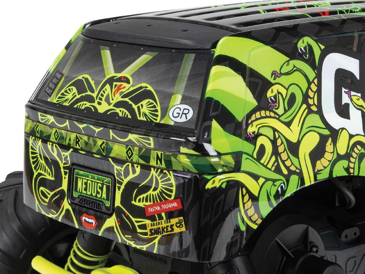 Blast beyond routine RC with a monster truck that's built the way only ARRMA® makes them — tough as nails, full of attitude, and capable of pushing past anything in your path. Fully assembled and ready to run, the 1/10 scale ARRMA GORGON™ MT is perfect even for young, first-time bashers and a fun addition to any hobbyist's fleet of RC vehicles. It's fun to drive, affordable to own, and easy to upgrade with LiPo batteries and brushless motors whenever you're ready for next-level performance.
