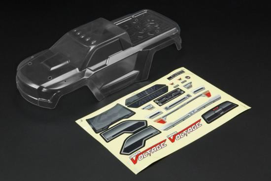 ARAC3328 Arrma Granite Voltage Clear Bodyshell (Inc. Decals) Features:Super-tough polycarbonate material - Aggressive ARRMA styling for awesome looks and maximum performance in all conditions – Clear pre-trimmed polycarbonate material to allow for custom painted and decaled trim schemes – Protective outer coating to avoid unwanted overspray during painting - Vehicle decals included on high-quality vinyl sticker sheet for added detail and stylish looks