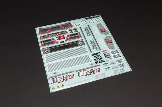 AR402210 Outcast 4x4 Clear Body with Decals Features:Super-tough polycarbonate for increased impact resistance and long-lasting durability - OUTCAST 4S vinyl decal sheet included for added detail - Pre-trimmed for fast and easy fit - Protective over-spray film for fast and easy custom painting