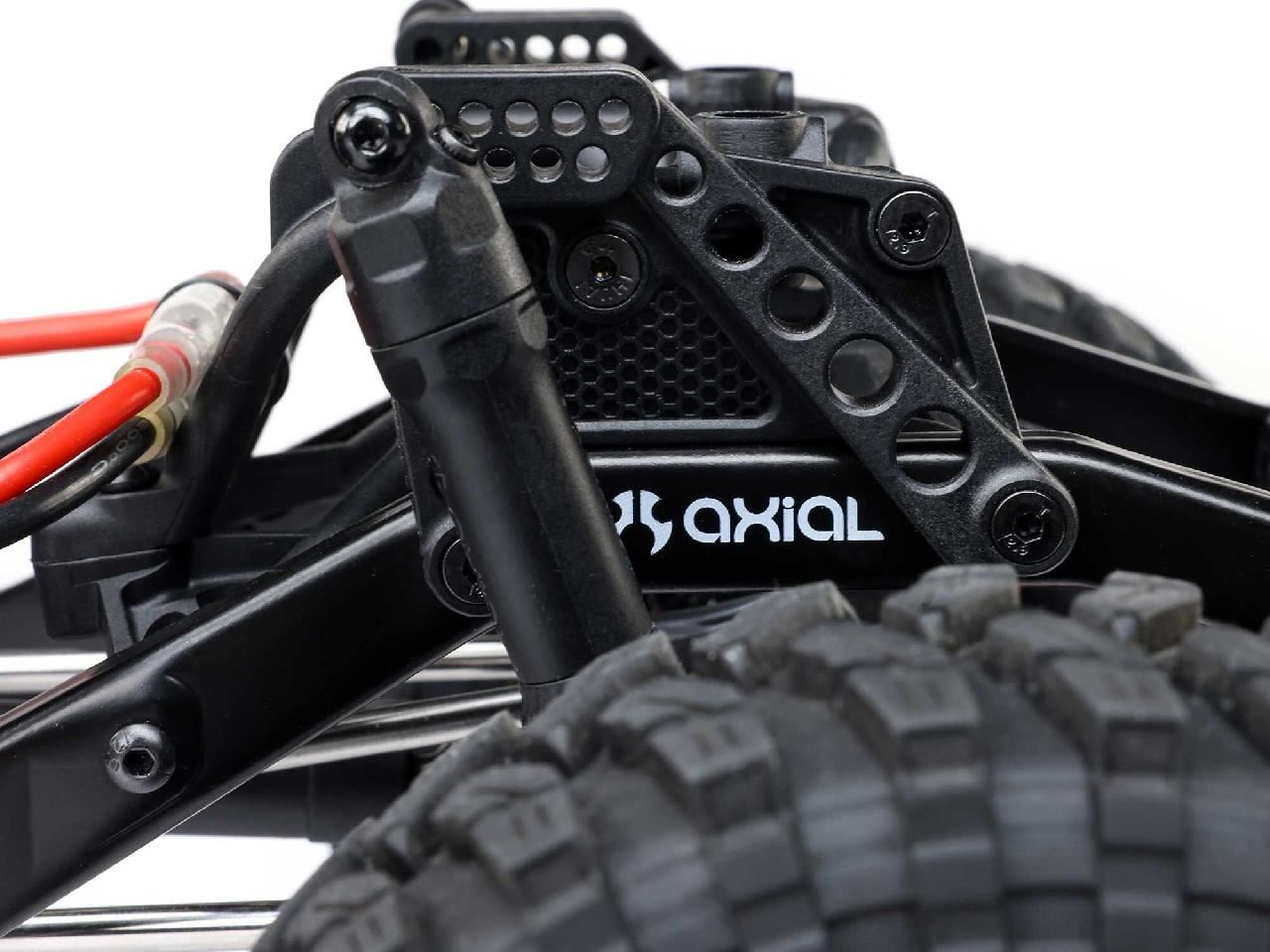 These updates join proven features that have made the Axial SCX10 III a favorite on the trails. Its one-piece steel C-channel chassis reduces frame flexing and increases suspension precision. With all-metal internal gears and a full set of ball bearings, the LCXU 4-wheel drive transmission easily handles rough off-road surfaces. AR45P portal axles increase the ground clearance at the differential for gliding over uneven terrain.
