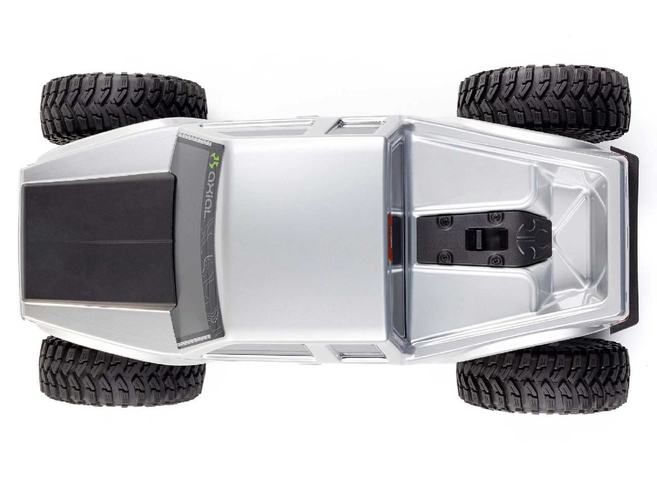 Axial also incorporates a clipless mounting system for the Pro-Line Coyote body, enhancing the rig’s looks by eliminating visible body clips. The body is hinged at the rear and removes completely for effortless chassis access. There are no clips to fuss with and lose. For the best performance on the trails, the body is pinched in the front, dovetailed, and bobbed in the rear, and only as wide as necessary. It slips through narrow obstacles and allows ample tyre clearance and suspension articulation.