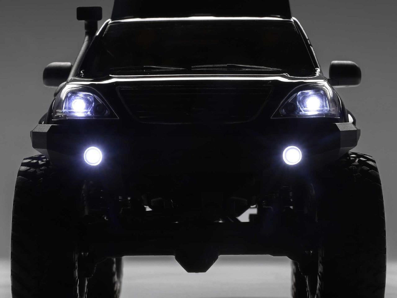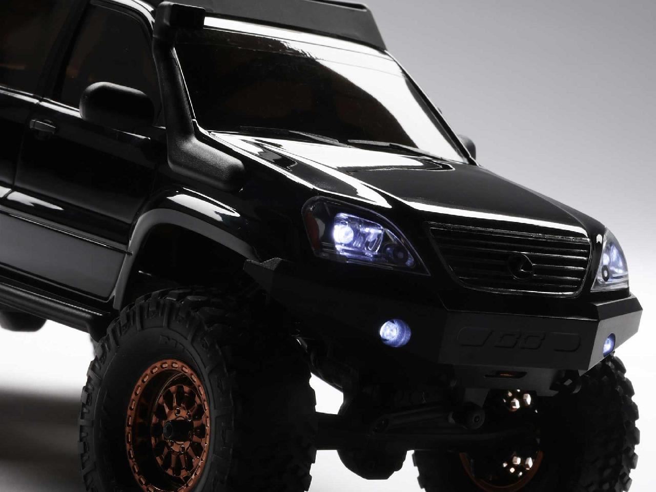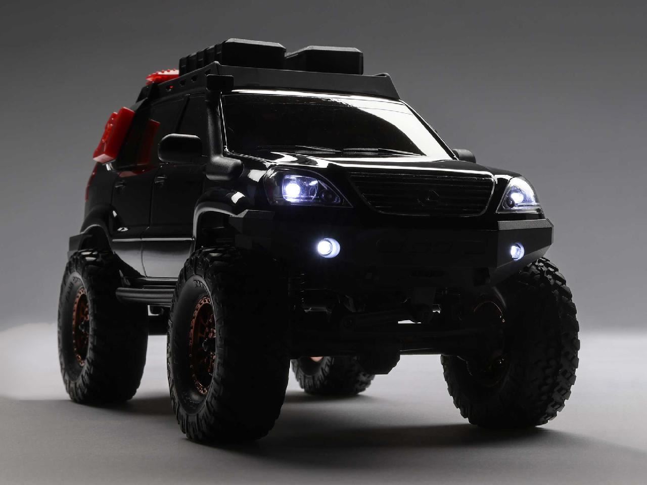 With its officially licensed, extra-durable ABS hard body, the GX 470 matches that performance with an exceptional amount of scale realism. The body comes factory-finished in white, silver, or black, and is topped off with scale accessories and working lights. Officially licensed Black Rhino Raid wheels and Nitto Trail Grappler M/T tyres complete the picture while boosting the rig’s capability to conquer a wide range of surfaces.