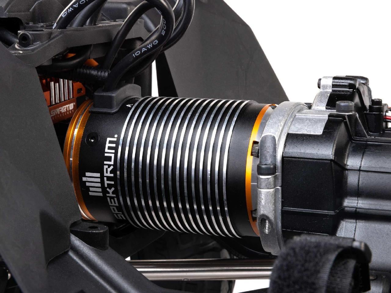 Included and installed, the Spektrum Firma™ 120A Smart Brushless Crawler ESC provides throttle input to the massive Firma 1200Kv Sensored Brushless Motor. The motor itself weighs in at 1.75lb (.780kg) and gives this beast enormous power and realism!