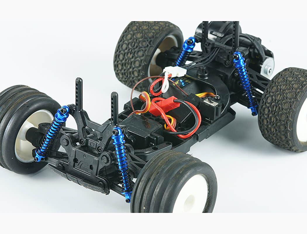 - Simplified Construction: Say goodbye to the hassle of oil-filled shocks! The GT24ST SFD features an easy-to-assemble design with a sliding shaft, cylinder body, and stock spring.