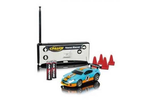The manoeuvrable CARSON RC NANO RACER are the racing cars for tight spaces. The mini cars are controlled by the MHz 2-channel remote control, which also serves as a charging station and for storage. For the transmitter high-quality mignon batteries are included. The racers have full driving function and are equipped with LED lighting front and rear. Make your table a racetrack and deliver exciting races in the tightest of spaces. Thanks to 100% complete delivery, the CARSON NANO RACERS are ready to go. Buy, load - drive!