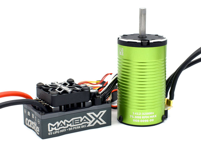 The Mamba X is extremely versatile, capable of powering a wide variety of applications ranging from 2S to 6S and vehicles ranging from 1/10th scale to 1/8th scale*.The Mamba X with 1412-2100K with 5mm shaft sensored motor is perfect for 2WD and 4x4 short course trucks, monster trucks and rock racers running up to 3s LiPo and weighing up to 6.5 lbs; it can be run on a 4s LiPo with very conservative gearing and keep a close eye on temperatures. It is a cooling running torque animal for lighter 1/10th scale 2WD stadium trucks and buggies running up to a 4s LiPo.