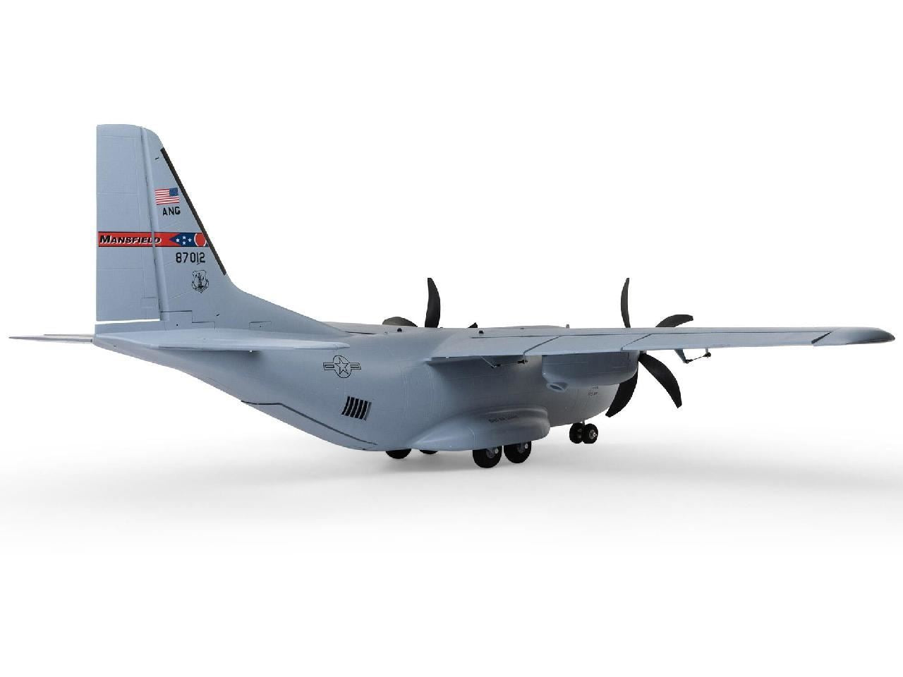 There are eight factory-installed servos, including metal-geared servos on all of the control surfaces plus the functional cargo door so you can carry and drop creative payloads from the large cargo bay. Realistic-looking LED landing, navigation, and simulated strobe lights are powered from the flight battery so you can fly from dawn until dusk — from paved, grass, or dirt surfaces; off snow using the included skis; or from large ponds and lakes using optional floats (sold separately). Remove the magnetically secured nose cone to install a GoPro® or similar camera for recording aerial HD footage or mount a separate FPV camera on the large top hatch (cameras/gear sold separately). Plus, you can use the included decals to customize the now fully-painted gray finish with Ohio Air National Guard, Air Force, Army, Coast Guard, Marines, Navy, and other markings to personalize your model! And the result is the most capable, versatile, and fun to fly twin yet for a wide range of intermediate to experienced pilots interested in scale-like, sport, and even aggressive 3D aerobatic flying.