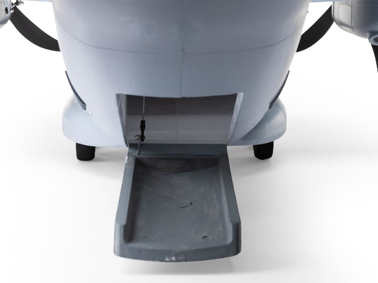 - Operational, servo-controlled cargo door with 2.5 x 4.2 inch (65 x 107 mm) opening and almost 140 cubic inches of cargo bay volume (cargo bay is 2.5 x 4.2 x 12.7 inches / 65 x 107 x 323 mm)