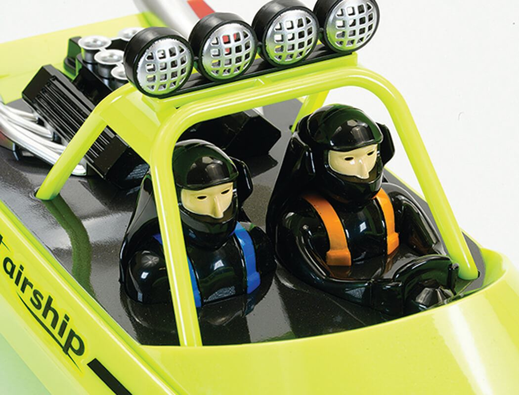 With its 390 sized, water-cooled brushed motor and 7.2V 1500mAh Li-Ion battery the Glader can skim the water at up to 28kmh. The low battery and radio range alarm ensures you can return to shore before it’s too late and should the Glader capsize, a one click reset will help right the boat.