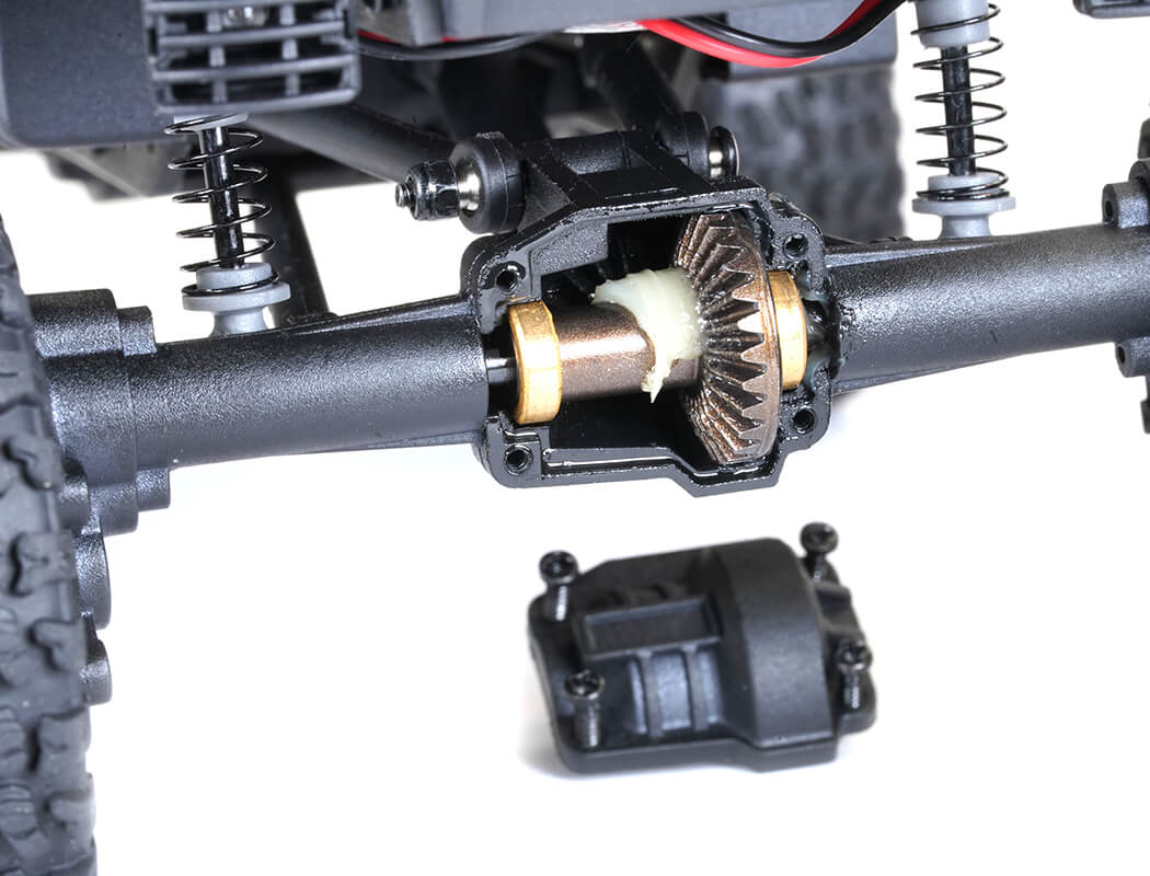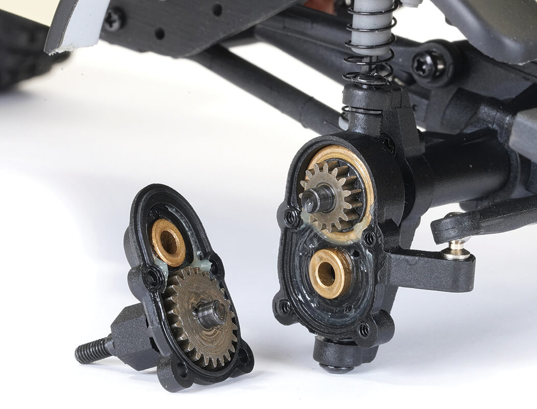- Heavy duty metal gears in front and rear axles