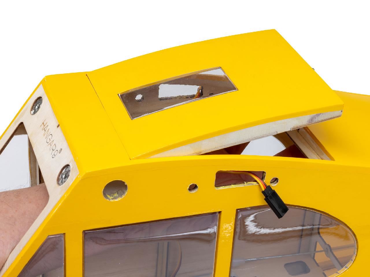 A large top hatch with windshield, transparent windows, plus seats and a pilot bust add to the scale looks along with wing struts, tail bracing wires, and other details.