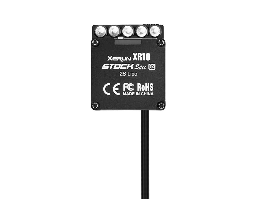 The XR10 Stock Spec G2 ESC is smaller and lighter than the standard XR10 Pro range and is the mini version of XR10 Pro 160A. The super small size (34.8 x 30 x 13.8mm) makes the installation convenient and the light weight provides more weight margin when adjusting the balance of the chassis.