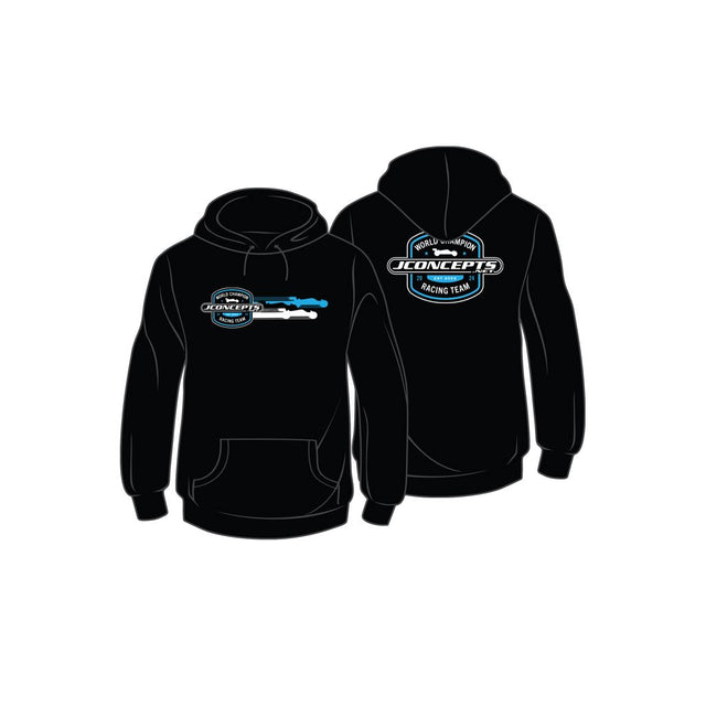 All the best parts of a good sweatshirt reside in this garment. The overhead hood top positioned for neck warmth and upper extremity coverage is in place. Lower dual pockets for miscellaneous storage or hand rest location are comfortable and convenient. The pullover style makes for quick and easy apparel changes throughout a climate changing race day. Fit is always top notch and now with an assortment of sizes ranging from M to XXXL, there is no excuse not to look your best. JConcepts, established in 2003, is truly World Proven Innovation and Design.