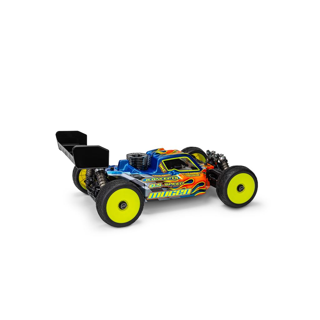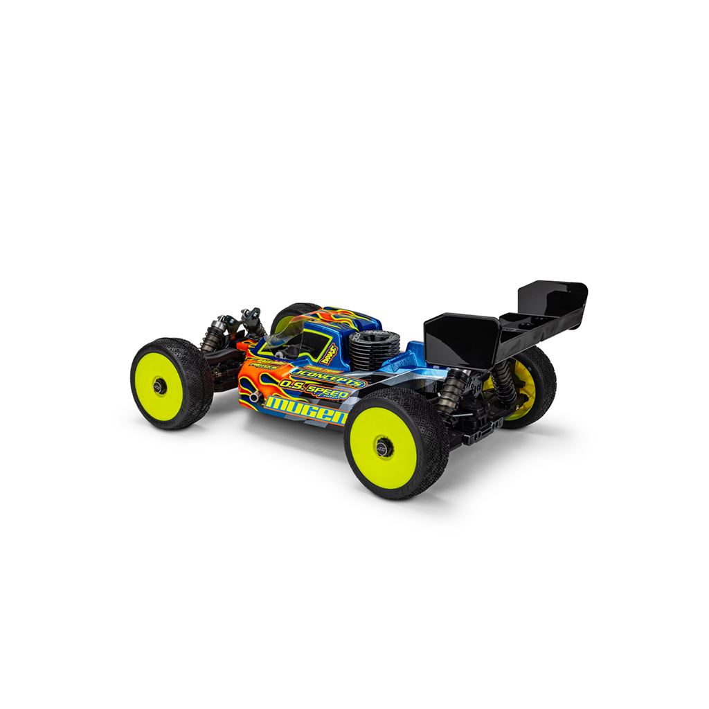 For a fresh season of competition, JConcepts has incorporated a small mini fin placed behind the rear of the cab that does not interfere with the engine head. In the rear, the ramping feature that is so popular on the P2, creeps up behind the cab and engine head to create extra force and stability. The front of the body, the powerful and wide cab of the Punisher series pushes the P2 through the corners with speed. The top of the cab is reinforced, and the fin stabilizer whisks through the turns and has a driving sensation like the S15. The sidepod has built-in clearance with heavy chamfering at 2 angles and multi-angle S15 winglets.