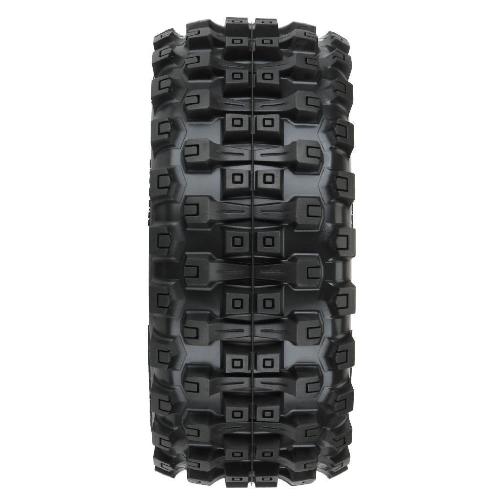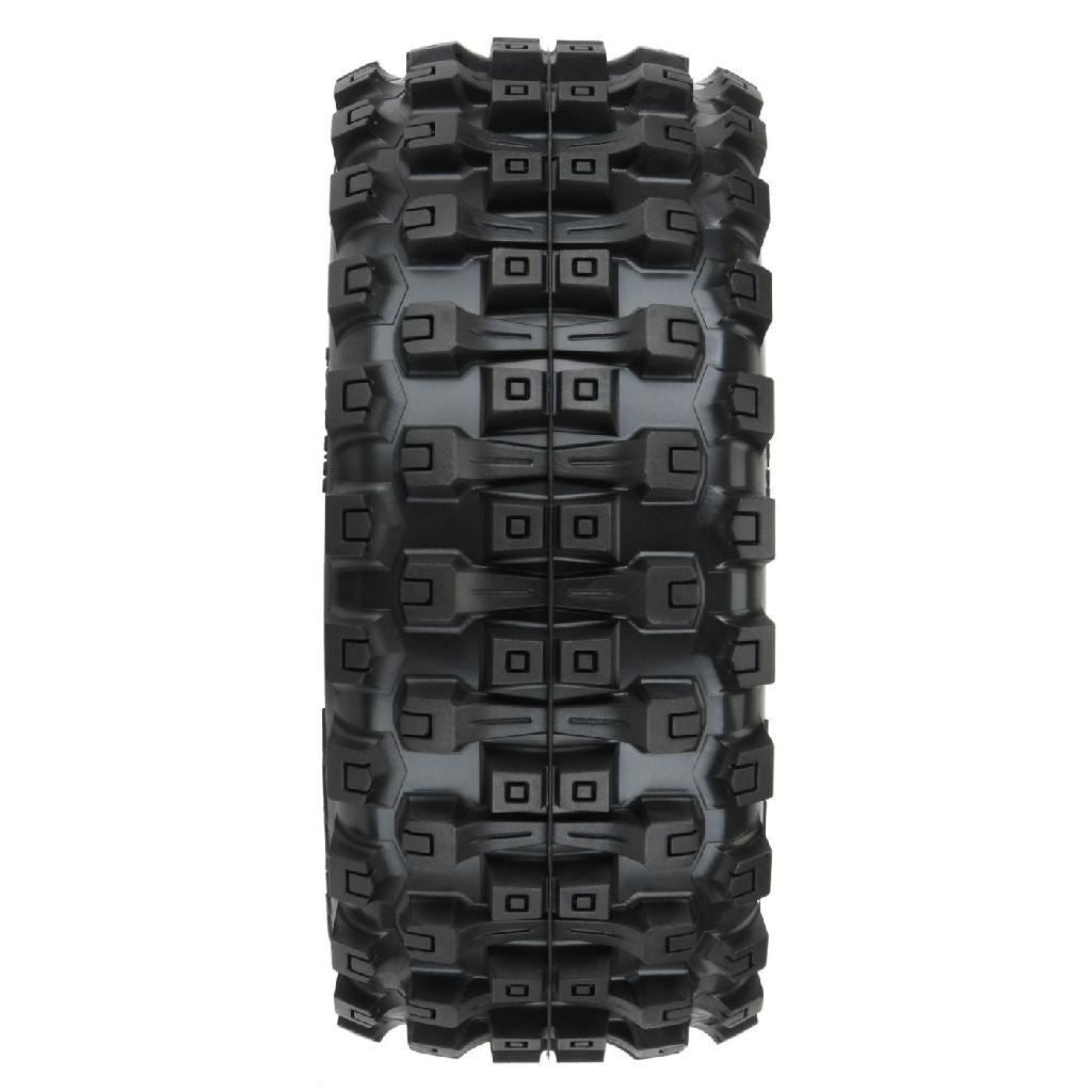Pro-Line is taking the 2.8" tire game to the next level with the Baddest tire ever conceived: the Badlands MX28 HP BELTED tires! Pro-Line Badlands tires are known for having a sweet Motocross inspired tread and the all-new Badlands MX28 HP tires kick that up a notch with Bigger and Bolder knobby tread in a similar size to the Original Badlands 2.8" tire (PRO117310) that you know and love. The Badlands MX28 is a true All-Terrain tire that will find traction on any surface but is best suited for loose & loamy dirt, mud or grass. Just imagine your truck throwing up huge rooster tails with these awesome looking tires!