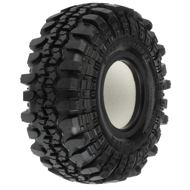 This is a pair of Super Swamper® XL 2.2" Tires. Under official license from Interco® Tire Corporation, Pro-Line is proud to announce the 2.2" TSL SX Super Swamper XL in the legendary G8 compound. With "almost scale"not being acceptable and access to Interco's design data, Pro-Line's engineering staff has reproduced the Super Swamper in a scale configuration matched by none. The new 2.2" XL is perfect for scale crawlers that want maximum ground clearance and unmatched rock crawling performance.