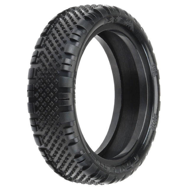 This is a pair of Prism 2WD Buggy Front Carpet& Tires. Introducing the Prism 2WD Front Carpet Buggy race tire! The Prism 2WD front features tons of Ultra-Sharp Prism shaped Pins in the middle of the tire combined with Wedge style pins on the outside for incredible steering on small and tight carpet tracks without the edgy feel of full pin tires. The pins on the Prism are slightly smaller than the original Pin Point tire but there are many more of them, which results in faster and more consistent lap times. The Prism pins have been positioned with the knife edge pointed front to back and side to side for maximum grip and stay sharp even as they wear down. The Prism 2WD Front tire perfectly pairs with Pro-Line's Prism 2.0 Rear tire for ideal carpet racing performance. The Prism tire is another leap forward in the hot carpet racing scene; be the first with the fastest carpet tire yet - Pro-Line's Prism 2WD Front!