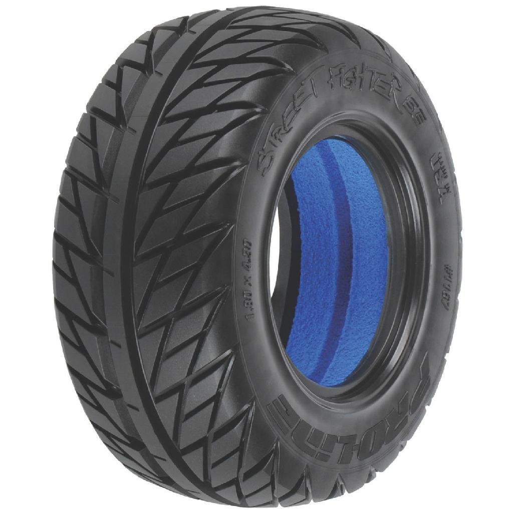This is a pair of Pro-Line Street Fighter SC 2.2"/3.0" Tires. Looking for the ultimate long-wear street tire? Then check out Pro-Line's Street Fighter SC. Based on the latest in high-performance on-road tire technology, the Street Fighter SC has the perfect balance of G force enhancement and style that will keep your Short Course truck turning heads.