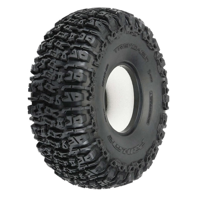 The almighty Hyrax finally has some real competition with Pro-Line's all-new 2.2" (5.75" Tall x 2.27" Wide) Trencher Tire! Inspired by Pro-Line's insanely popular all-terrain Trencher tread, this rock racing tire is ready for anything the terrain might throw at you. The Trencher 2.2" tire features an extremely aggressive tread pattern with each tread block containing multiple sipes and multiple levels for incredible tread flex while still looking great on a Scale Rig. The highly detailed connected tread on the sidewall of the Trencher extends out for great side-hilling performance that only slides out when you want it to! The Trencher 2.2" tire is made from Pro-Line's Legendary G8 material Compound, so you know it provides the performance you can depend on. The future of 2.2" tire performance is here with Pro-Line's new Trencher tires! Get your own set of Trenchers today!