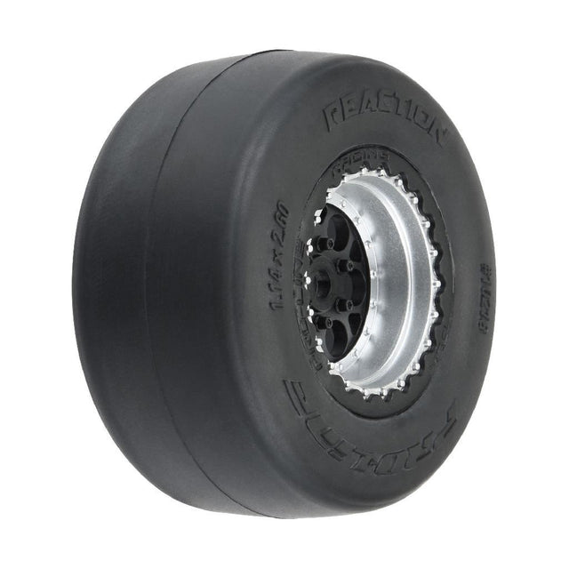 PRO1021810 | Reaction No-Prep Drag Racing Tires Mounted on Showtime+ Black/Silver Wheels for Losi® Mini No-Prep Drag Car Rear