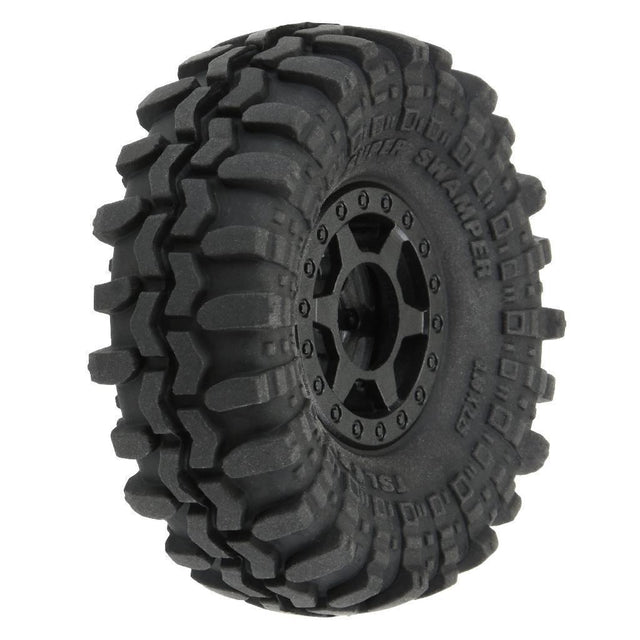 PRO1021410 | Interco® Super Swamper® TSL SX 1.0" Tires Mounted on Mini Holcomb Black Internal Bead-Loc 7mm Hex Wheels (4) for SCX24™ Front or Rear