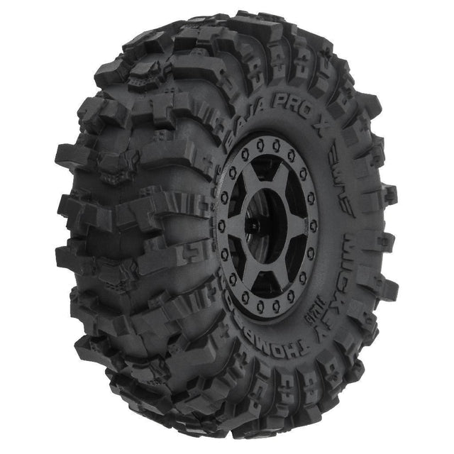 PRO1021510 | Mickey Thompson® Baja Pro™ X 1.0" Tires Mounted on Mini Holcomb Black Internal Bead-Loc 7mm Hex Wheels (4) for SCX24 Front or Rear