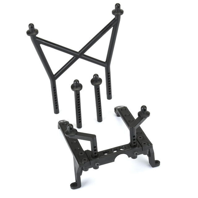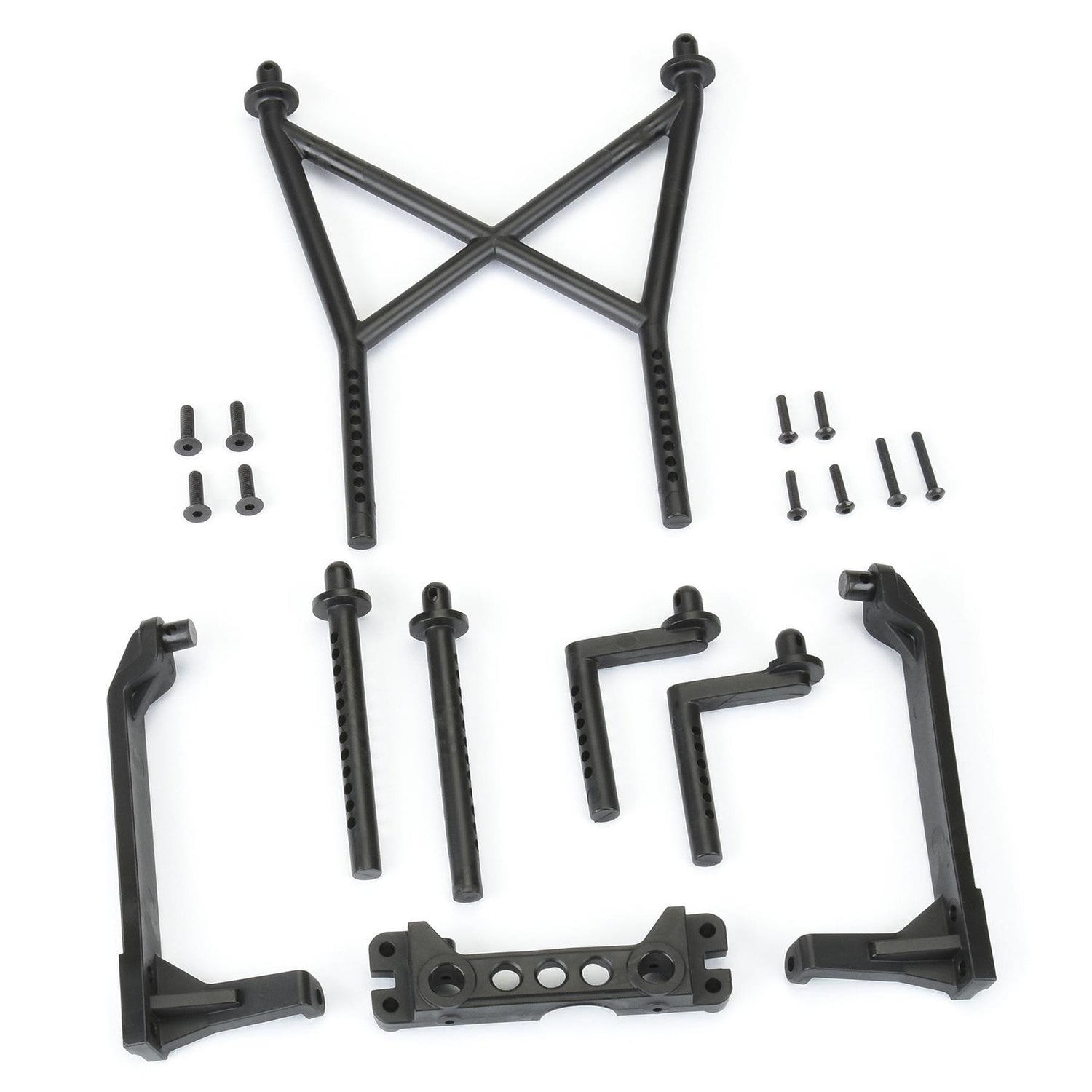 This is an Extended Body Mount Kit for the SCX6™. Pro-Line continues to innovate with more must-have accessories for your SCX6™. The Pro-Line body mount kit includes relocated, adjustable front body mounts with multiple post options to fit any shape or style body for your SCX6™. The front mounts have been moved forward ahead of the shocks/servo mount to minimize any interference with the windshield or cowl details. The set also included a tall rear mount for SUV-style bodies and hardware to install the kit.