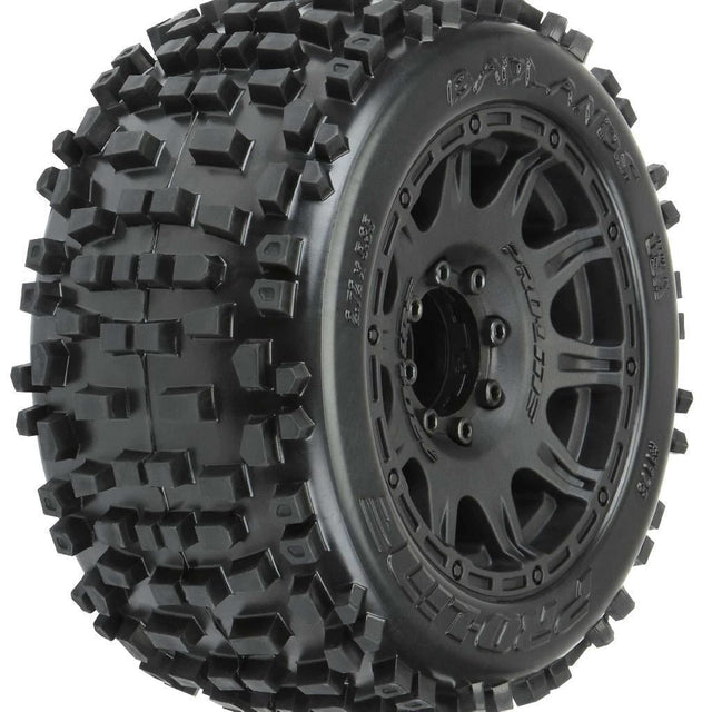 Proline 1/8 Badlands F/R 3.8In Mt Tires Mounted 17mm Blk Raid (2)