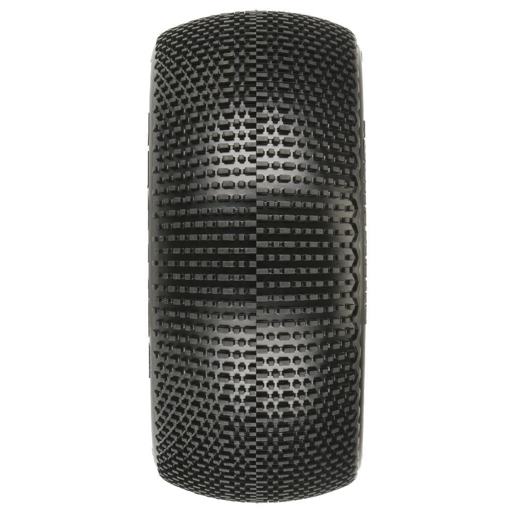 This is a pair of pre-mounted Buck Shot 1:8 Truggy Race Tires. The Buck Shot debuted at the 2017 ROAR National Championships and is already a Winner at the hands Pro-Line Team Driver Ty Tessmann! The Buck Shot has pins that are very close in size to the amazing Hole Shot 2.0 but the Buck Shot pins are stacked closer together side to side, which provides significantly longer-lasting performance. Unique to the Buck Shot are the alternating elongated bars that provide incredible forward grip! Like the extremely popular SwitchBlade tire, the Buck Shot is a directional tire with different tread on the outside compared to the inside, allowing you to mount the tires in the direction that suits your current track conditions. One side of the tire has standard pins, which is ideal for loose or low traction conditions where you want the tire to add side grip and improve steering. When you mount the tire the other direction, the connected side tread (Blade) reduces side traction in high-bite or edgy conditions. Racers who have tried the Buck Shot are saying that it is their new favorite tire!