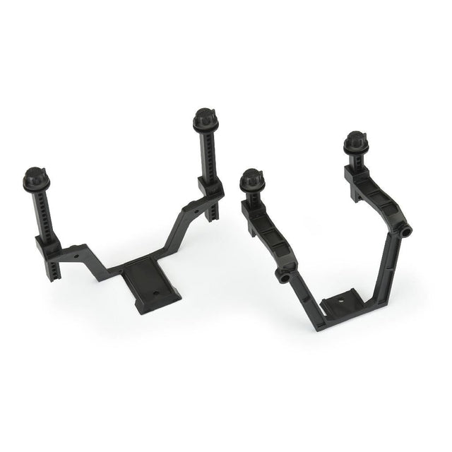 Pro-Line continues to innovate with more must-have accessories for your truck. The all-new Pro-Line body mount kit includes adjustable body mounts so you can fit different bodies onto your MAXX®! But Pro-Line Engineers did not stop there. Instead of just using the stock body mounting system that always causes your body to pop off and go flying, the Pro-Line Extended Body Mount kit includes a revolutionary screw-on body mounting system for a strong and secure mount every time. No more doing the walk of shame to pick up your lost body! Just screw down the included setscrew into the body mount, place the O-Ring over the setscrew and mount your body as you normally would, but with the added safety, security, and styling of Pro-Line's innovative screw on body mounting system! This body mount system opens many new body options that you didn't have before.