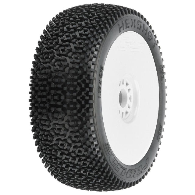 PRO9073233 | Hex Shot S3 (Soft) Off-Road 1/8 Buggy Tires Mounted on White 17mm Wheels (2) for Front or Rear