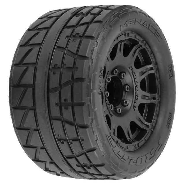 This is a pair of Menace HP 3.8" tires. Pro-Line Menace tires are 1:1 racing-inspired tread designed to give your 1/8 Monster Truck massive traction on your street, parking lot, or track.
