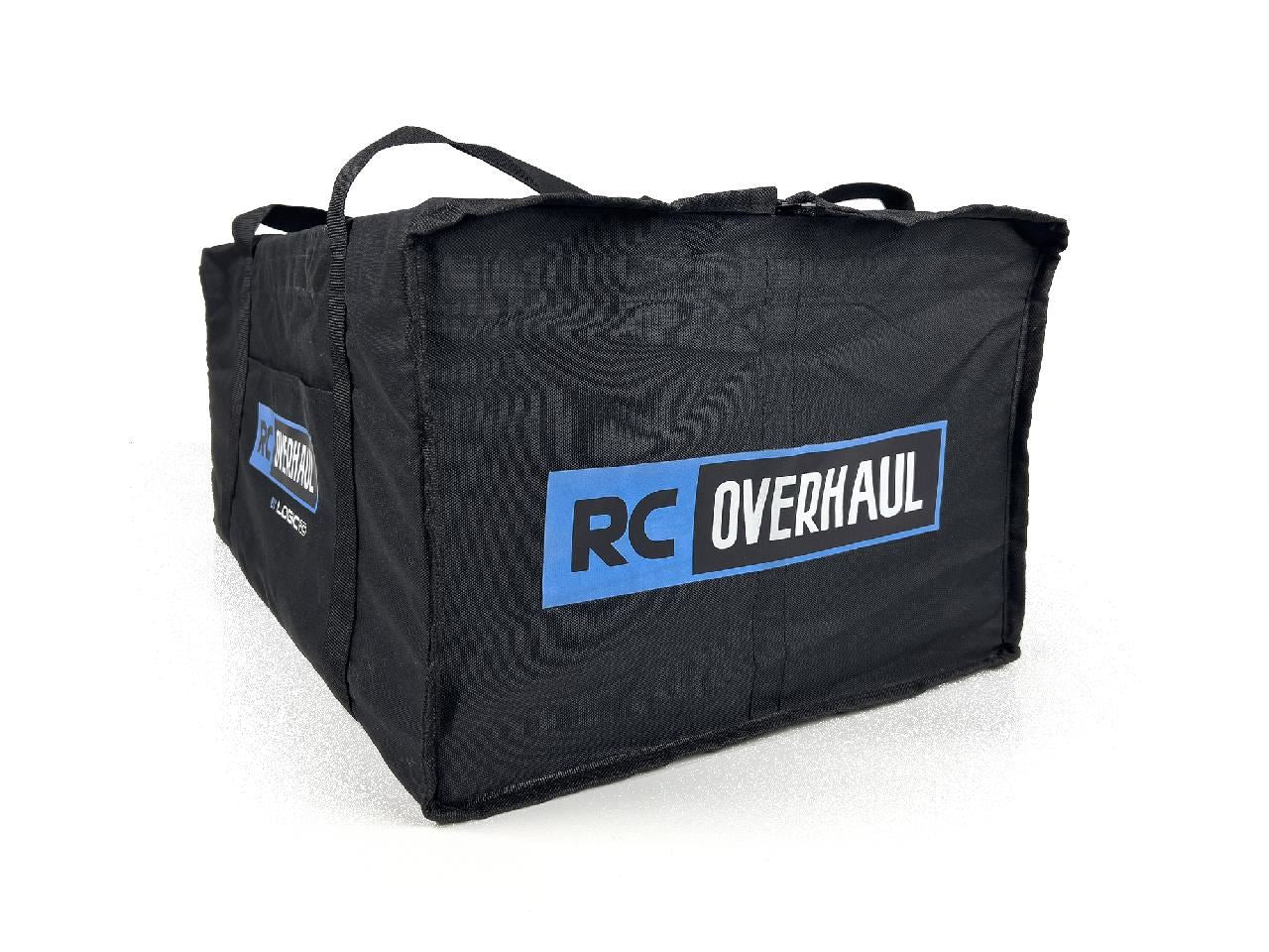 Introducing a simple and versatile storage solution for an array of applications. With a footprint of 560x360mm and a depth of 250mm, the RC Overhaul Hauler Bag is ideal whether you are looking for an upgrade to the factory cardboard box your vehicle came in to keep your kit together; through to a simple storage bag for tyres or race kit or even a place to keep your dirt covered car at the end of a long days bashing or racing! The applications are almost endless and thanks to it's design the bag is versatile for whatever storage need you may have.The bag comes flat packed and can be put together in a matter of minutes! The bag is manufactured from a tough and durable canvas material which will stand the test of time. Thanks to plastic card inserts the bag has a rigid shape meaning it won't collapse when unsupported! Included are 2 internal dividers that can be positioned across the width of the bag at any point thanks to the Velcro strips sewn onto the sides allowing you to divide the space how you desire. 2 additional external pockets allow you to store tools, manuals and accessories whilst the rugged zip allows you to keep the contents contained whatever way up the bag may be! Two straps are stitched to the sides of the bag providing a strong and reliable handle whilst the six rubber feet provide grips to prevent it sliding.