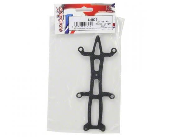This is a replacement Schumacher 2.5mm Carbon Fiber Top Deck, and is intended for use with the Schumacher Cougar SVR 1/10 scale buggy.