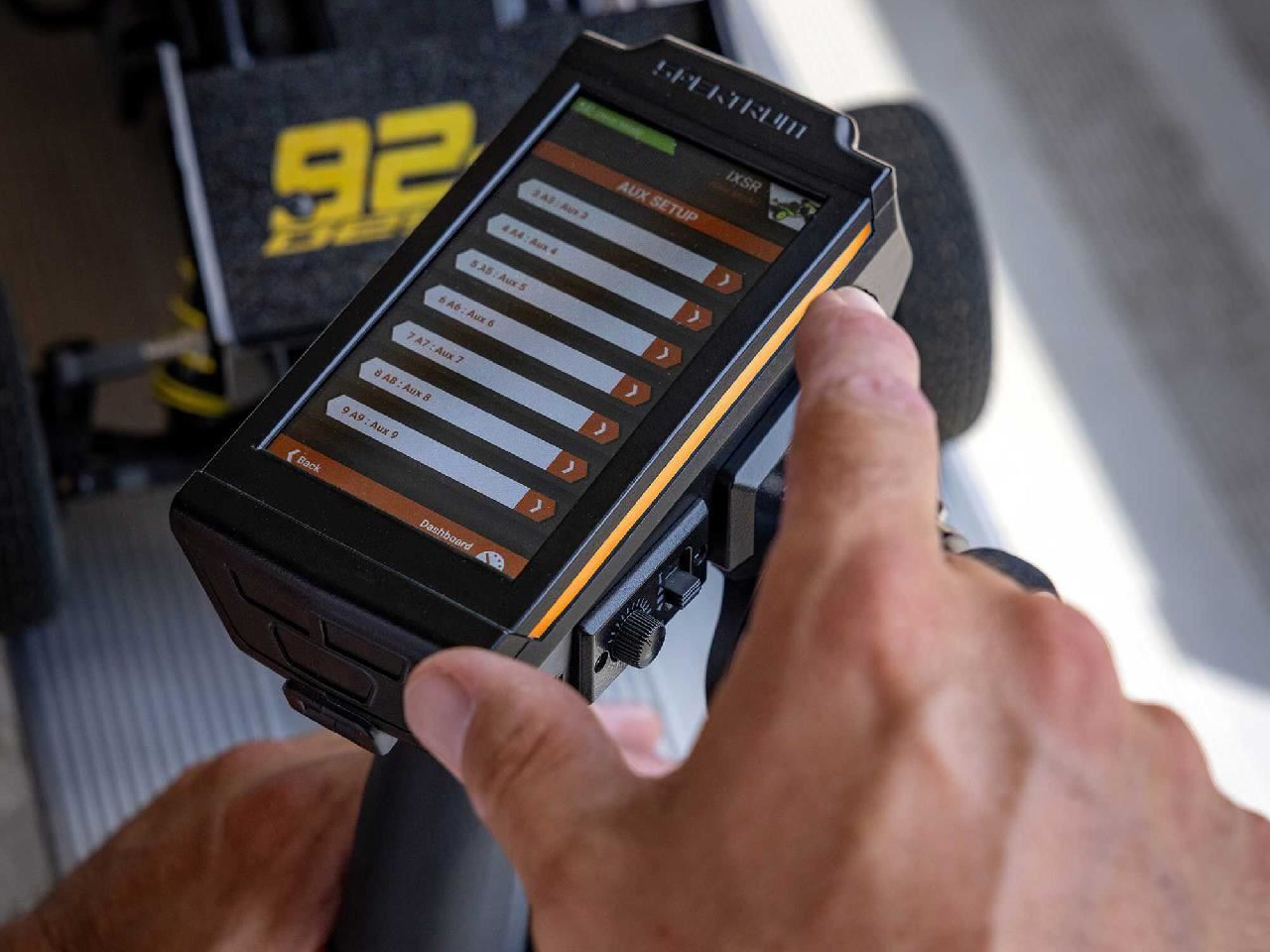 The Spektrum™ iXSR+ offers the best features and capabilities for accomplished drivers who handle the most advanced, high-performance vehicles. Its improved ergonomics, connectivity, and programmability are ready to take your control to the next level. This powerful, intelligent, and feature-packed transmitter includes Spektrum Smart Technology, 12 channel capability, SLT compatible with Dual Protocol, a 4.5-inch colour touch-display with leading-edge Android technology, customizable model setup, drag race control, and more.