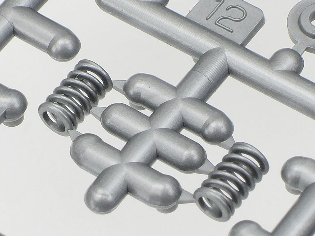 Photo-etched parts are included to depict the mesh sections of rear bumpers and are attached without using instant cement.