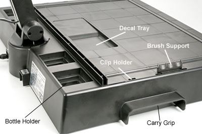 - Bottle holder specially designed to fit Tamiya cement, acrylic paint and