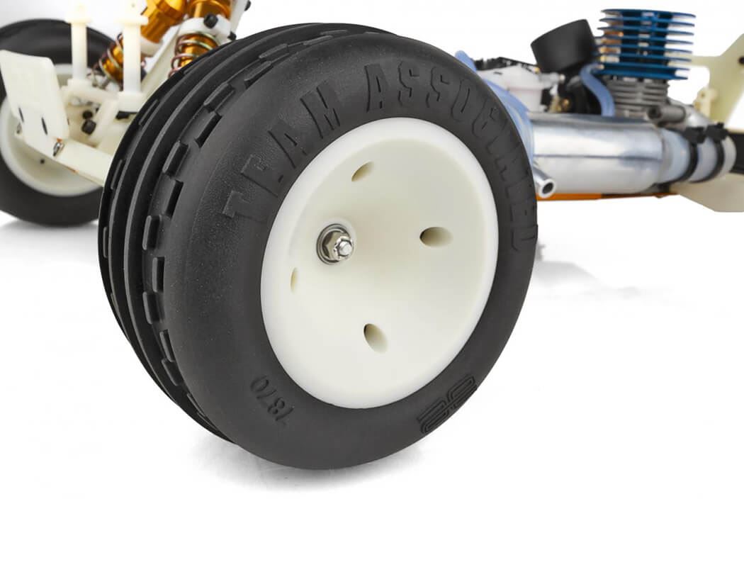 - Stagger block front and pin spike rear tyres developed by Team Associated specifically for the RC10GT.
