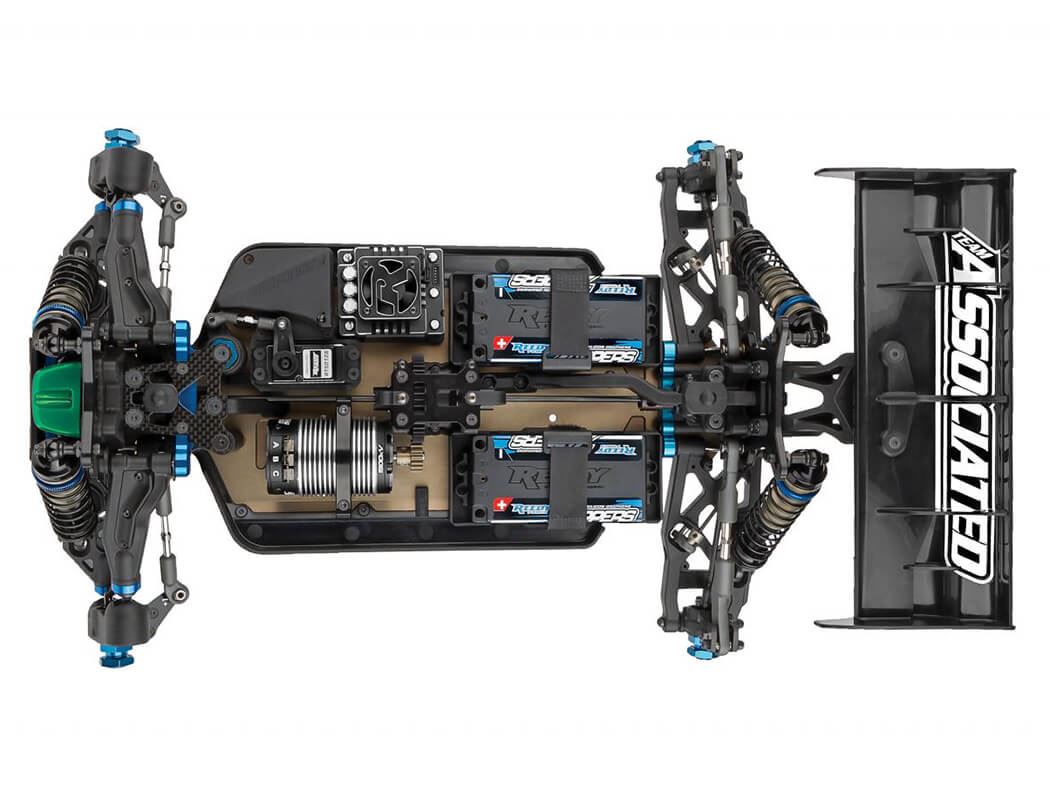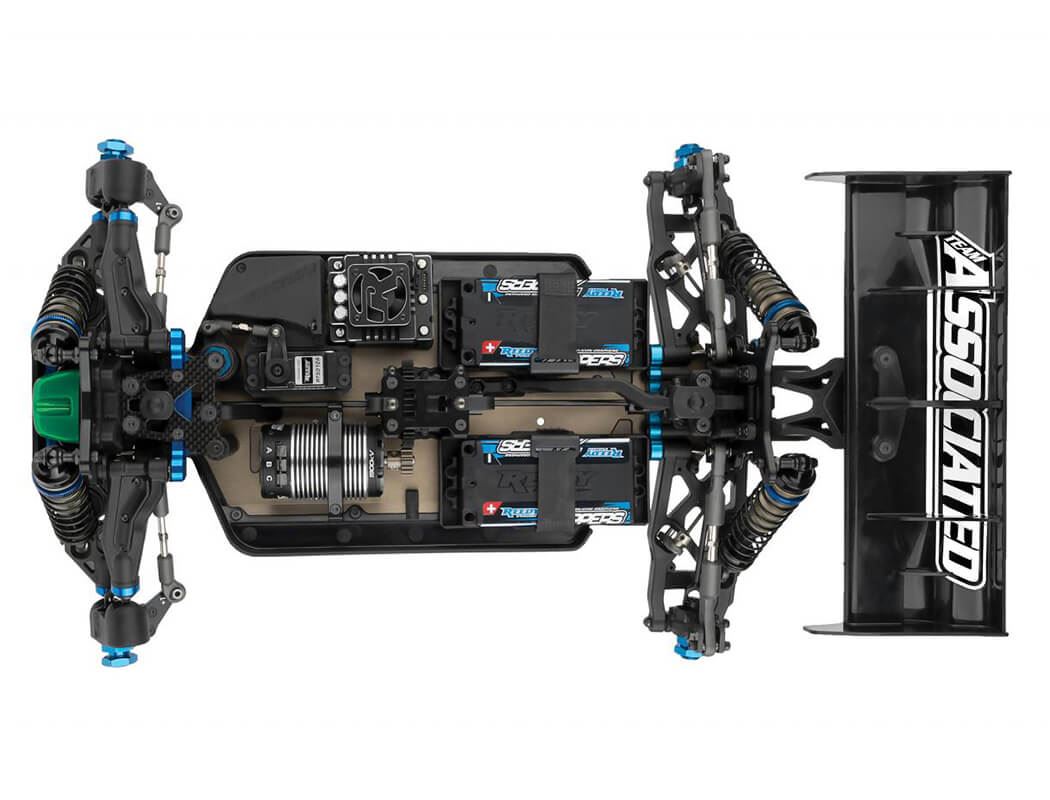 - RC8B4e centralized drivetrain and chassis configuration optimized for shorty-style batteries only