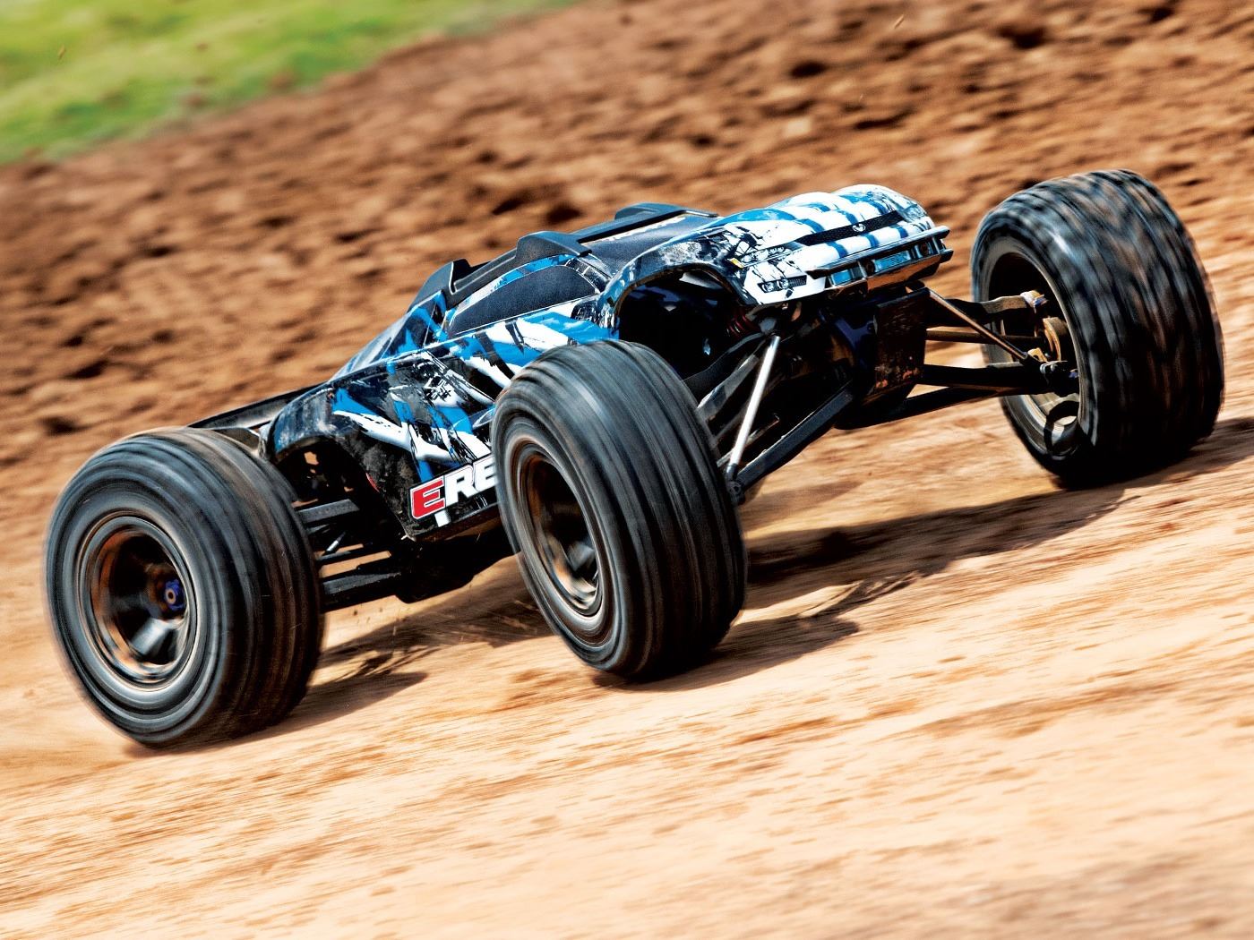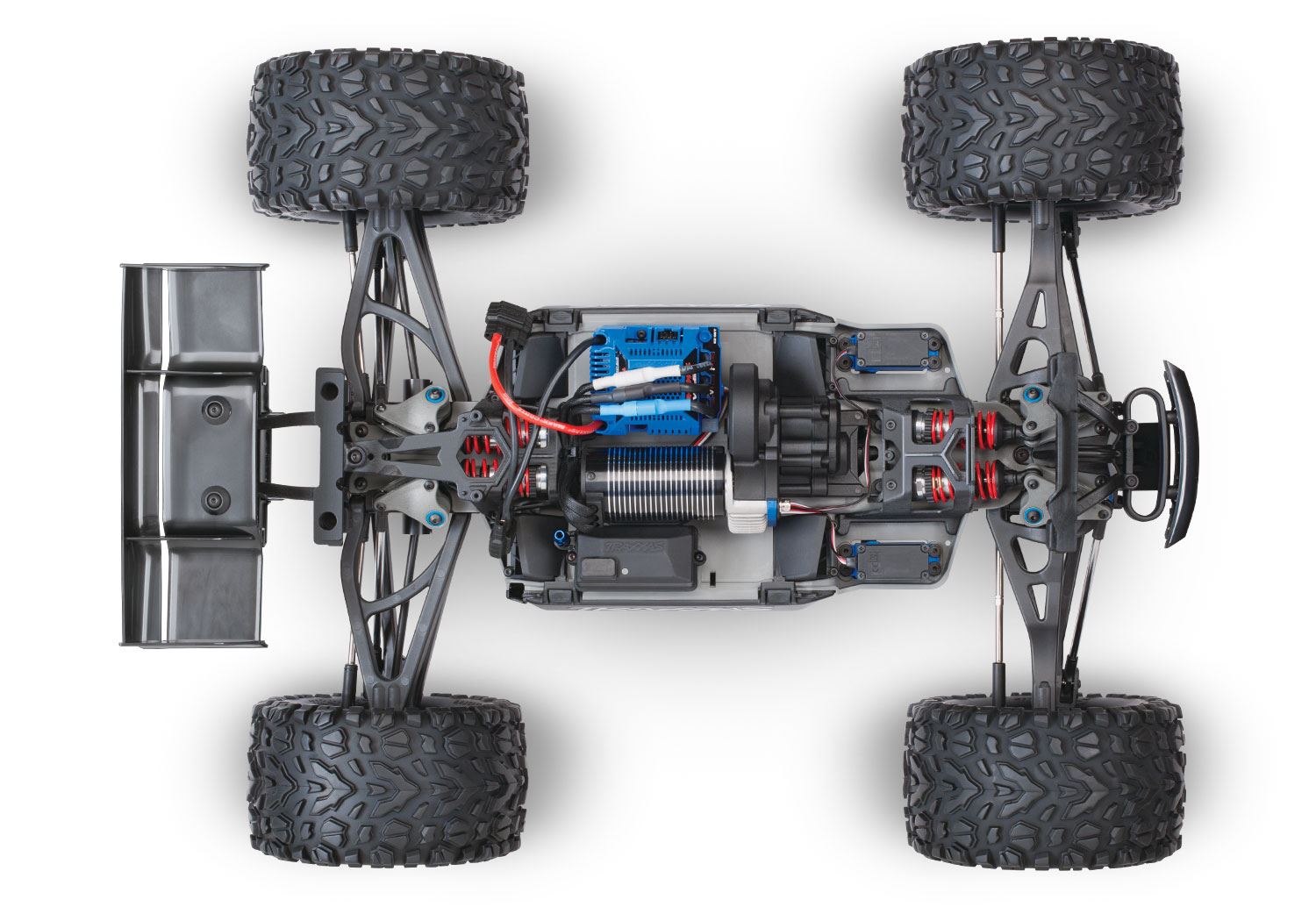 E-Revo’s over-the-top power can sometimes land you upside down. Traxxas’ exclusive Self-Righting system keeps the fun going with minimal interruption. Simply press a button on the transmitter and, in most circumstances, E-Revo will be back on its wheels in just seconds.